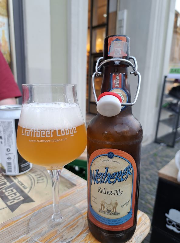 Wir sind eine kleine, übersichtliche Gruppe und können es uns bei bestem Wetter vor der Craftbeer Lodge gemütlich machen. Die Auswahl die Andrea in ihrem Laden hat ist echt grandios. Und so hat jeder bald ein leckeres Bier vor sich – und das bei sommerlichen Temperaturen. Was will man mehr! Gegen den aufkommenden Hunger holen wir uns Pizzen aus einem nahegelegenen Restaurant und lassen es uns so richtig gut gehen. Nach hopfigen IPAs und traditionellen Pils kredenzt uns Andrea noch Raritäten.