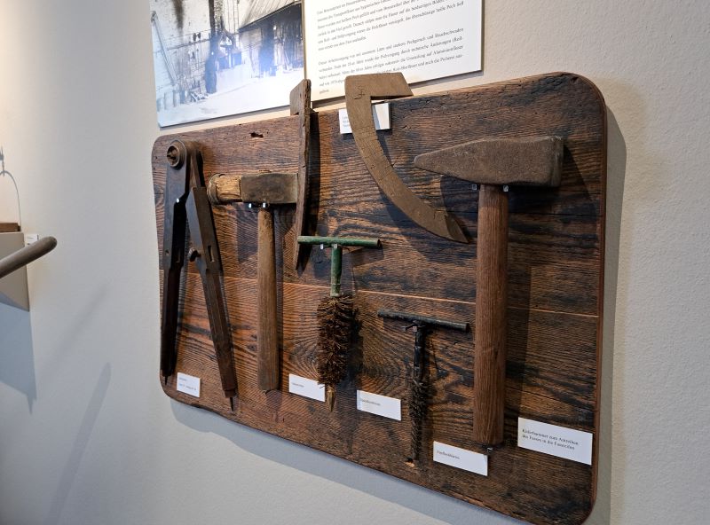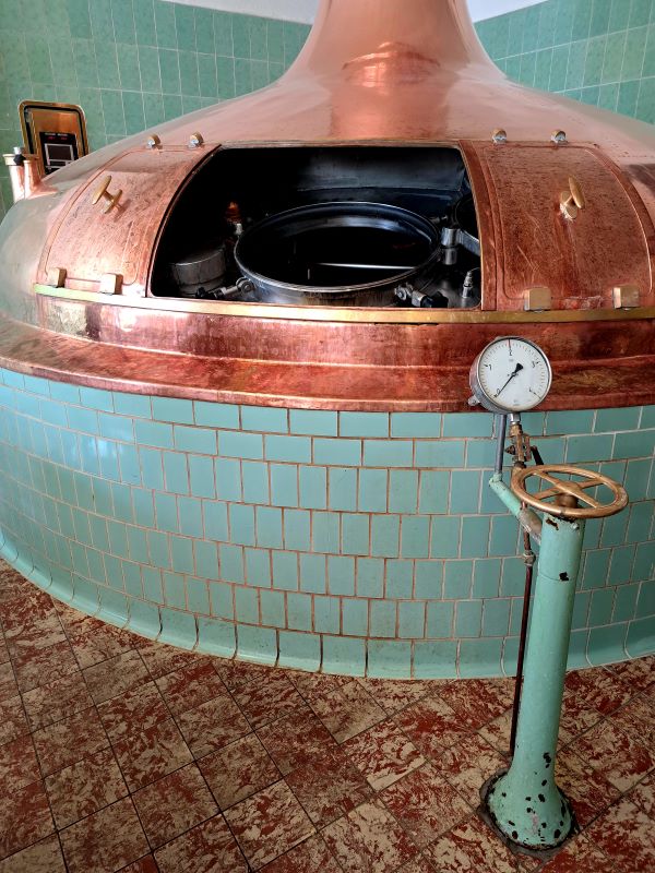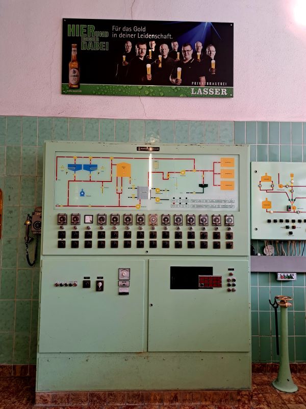 Nach dem Input zum Thema Malz geht es auf die Brauerei-Tour. Bernhard führt uns mit spürbarer Leidenschaft durch ’seine‘ Brauerei. Zu jedem historischen Relikt kann er eine Geschichte erzählen. Der Weg führt uns durch verschiedene Produktionsbereiche, die Temperaturunterschiede spürbar machen: während einige Räume angenehm warm von den Brauprozessen durchzogen sind, herrscht in anderen eine erfrischende Kühle. Wie gut, dass ich meinen Fleece mitgebracht habe – ein kleiner, aber kluger Begleiter auf dieser Tour!