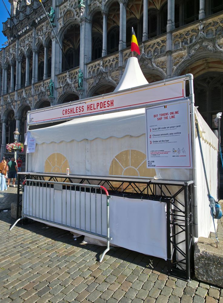 Der Eintritt zum Belgian Beer Weekend ist kostenfrei. Bezahlt wird für die Verkostung der verschiedenen Biere sowie für ein Pfandglas. Jede Brauerei stellt ein eigenes Glas mit dem Firmenzeichen oder dem Brauereinamen bedruckt zur Verfügung. Das ist ein Merkmal der belgischen Bierkultur und diese Tradition unterstreicht die Wertschätzung und den Respekt, die die Belgier ihrem Bier entgegenbringen. Beim Betreten des Veranstaltungsgeländes durch einen der Eingänge erhält man eine Zahlkarte, die über einen QR-Code oder an einem der Kassenhäuschen mit dem gewünschten Betrag aufgeladen werden kann. Man lädt jedoch nicht Euro auf die Karte, sondern Token. Ein Token entspricht einem Gegenwert von 2 Euro. Die Biere kosten zwischen 1 und 4 Token (2 – 8 Euro) und sie werden in der Regel in einem 1,5 dl Glas ausgeschenkt. Das Pfand für das jeweilige Glas beträgt 2 Token (4 Euro). Bringt man das Glas wieder zurück, wird das Pfand auf die Karte gutgeschrieben. Man kann das Glas aber auch behalten.
