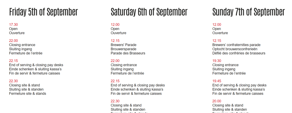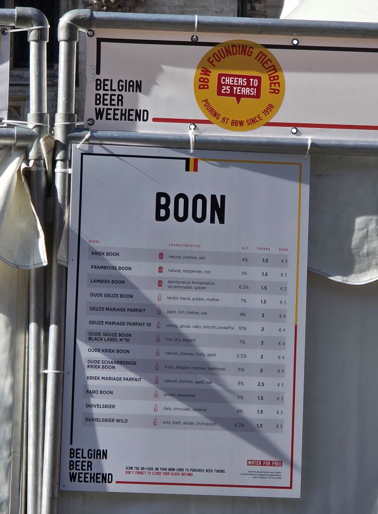 Der Sonntag ist besonders angenehm. Es sind weniger Leute da, und die Junggesellen sind abgereist. Obwohl bei einigen Brauereien gewisse Biere schon ausgetrunken sind, ist die Auswahl so groß, dass dies kaum ins Gewicht fällt. Wir genießen das schöne Wetter, die fantastische Stimmung und verkosten bei angenehmen Temperaturen Dubbel, Tripel, Kriek und Geuze.